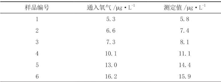 為了驗證氧電極法測定水中低含量溶解氧的可靠性,可設計專門驗證方法如純氧加入法與標準氣體法,通過已知水中或者空氣中的溶氧含量的樣品,通過氧電極法測定,來進行方法的驗證。具體見表2。