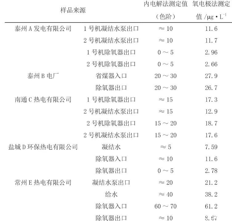 在實際應用中,現(xiàn)場測定的比色法大量存在,為了檢測氧電極法與比色法具有一致的參照性,我們進行了一系列的現(xiàn)場兩種方法的對照實驗,通過采集大量數(shù)據(jù),與內電解法進行對照,匯總結果見表4。