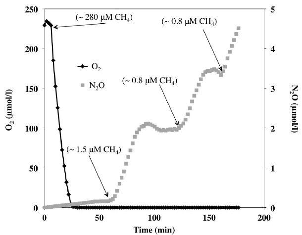 圖2、孔隙水化學隨MAT的變化??紫端贛AT周圍0至2 cm處取樣。MAT設置在~8 cm土壤深度,密度和空氣壓力分別為0.2 m2管外表面/m2土壤和25 kPa。Eh是相對于Ag/AgCl參比電極。