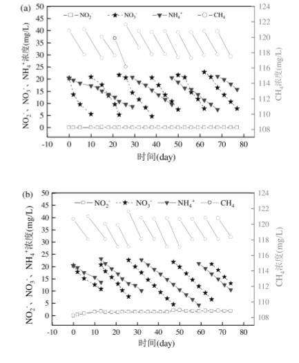試驗系統為以Anammox菌和DAMO古菌為優勢菌種的Anammox-DAMO系統,以西湖底泥?杭州西溪河底泥與農田水稻土壤的混合污泥為接種物,在厭氧條件下供給CH4?NO3-和NH4+,試驗期間系統運行穩定。