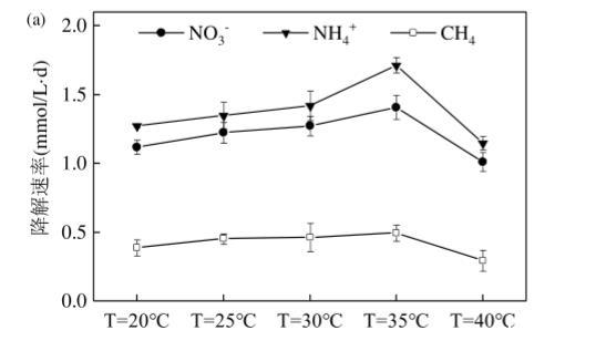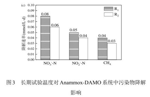 圖3長期試驗溫度對Anammox-DAMO系統中污染物降解影響
