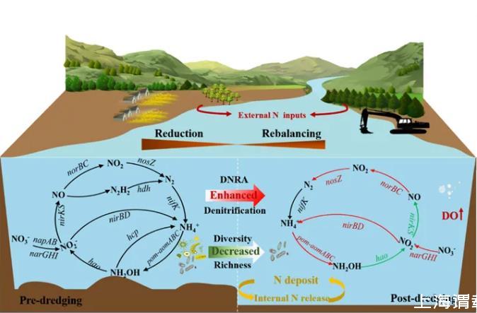 本研究成果以“From reduction to rebalancing:Insights into the long-term effects of sediment dredging on nitrogen transformations in river ecosystems”為題發表在《Water Research》上,該研究得到了國家自然科學基金(42107083)等項目資助。