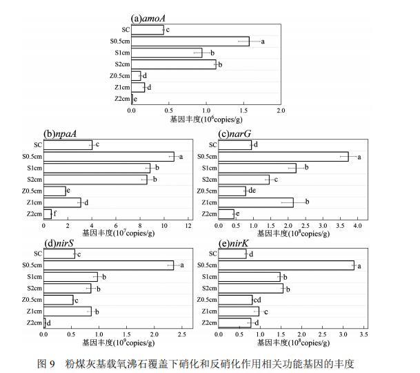 圖9粉煤灰基載氧沸石覆蓋下硝化和反硝化作用相關(guān)功能基因的豐度