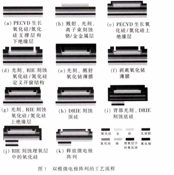圖1雙模微電極陣列的工藝流程