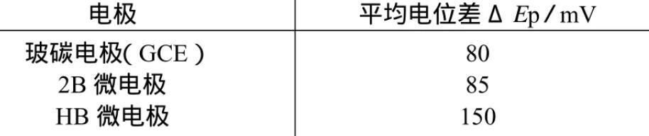 表1鐵氰化鉀探針在玻碳電極和不同鉛筆芯微電極的峰電位差