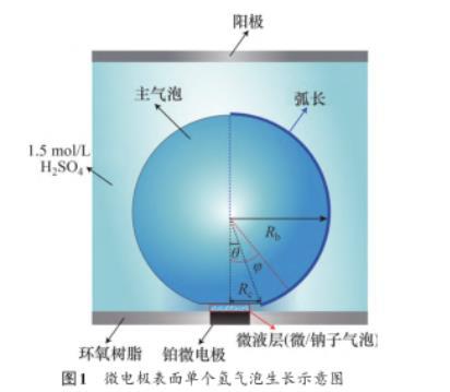 為探明電解水制氫電極表面氣泡動力學(xué)行為,諸多學(xué)者主要采用高速攝影可視化、電化學(xué)測量和理論分析等方法研究氣泡生長、黏附和脫離等行為。當(dāng)溶解氫分子濃度達到過飽和濃度條件時,電極表面成核點處產(chǎn)生氣泡,隨后氣泡繼續(xù)在電極表面生長和黏附。學(xué)術(shù)界主要采用理論分析結(jié)合電化學(xué)實驗的方法研究電極表面氣泡生長過程中的氣液傳質(zhì)行為。當(dāng)電極尺寸明顯大于氣泡直徑時(常指宏觀電極),目前普遍認(rèn)為氣泡生長行為受氣液界面擴散主導(dǎo)控制,并提出了相關(guān)氣液界面擴散傳質(zhì)速率模型。而對于電極尺寸非常小的微電極表面,目前僅從理論上推測氣泡生長行為受微液層直接注入控制。