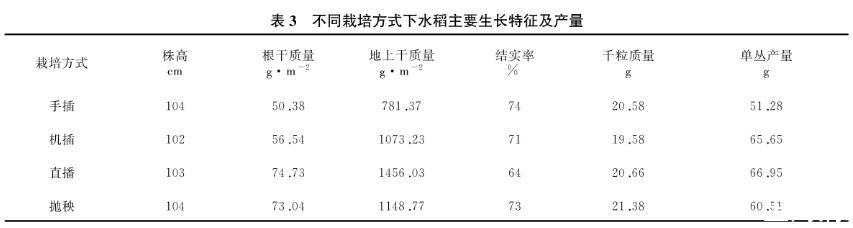 表3不同栽培方式下水稻主要生長(zhǎng)特征及產(chǎn)量