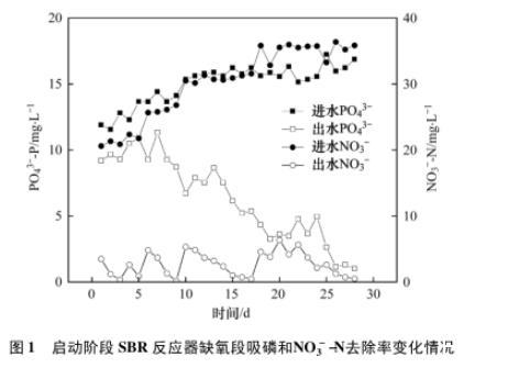 圖1啟動(dòng)階段SBR反應(yīng)器缺氧段吸磷和NO3--N去除率變化情況