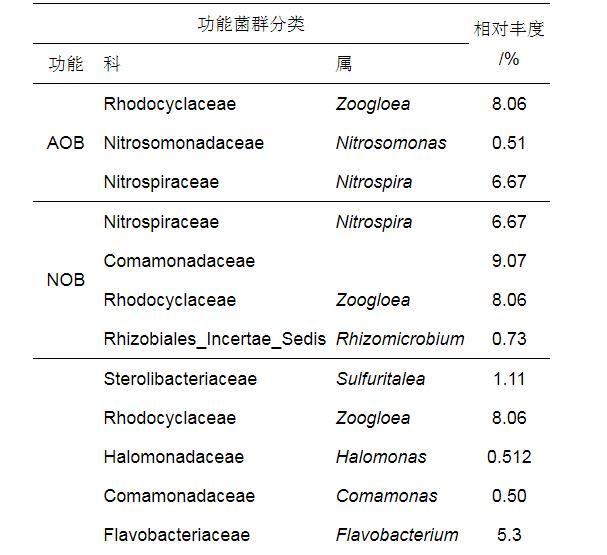 表6科級和屬級的脫氮除磷相關(guān)關(guān)鍵功能菌群