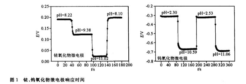 圖1銥、鎢氧化物微電極響應(yīng)時(shí)間