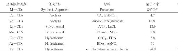 表1不同金屬摻雜碳點(diǎn)的熒光量子產(chǎn)率對(duì)比