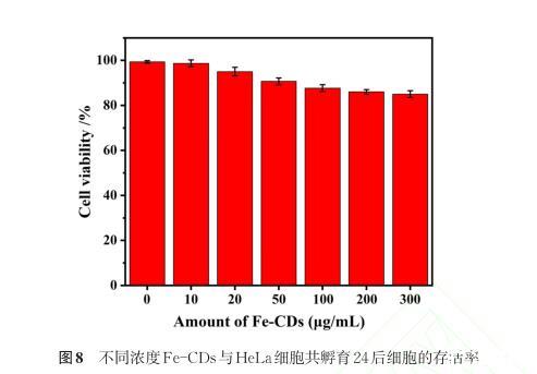 圖8不同濃度Fe-CDs與HeLa細(xì)胞共孵育24 h后細(xì)胞的存活率