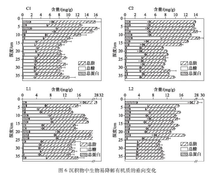 圖6沉積物中生物易降解有機(jī)質(zhì)的垂向變化