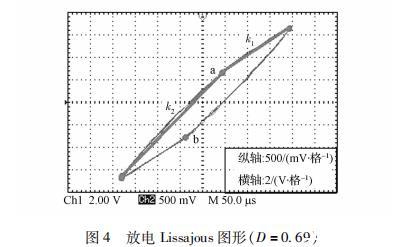 在實驗分析中發(fā)現(xiàn)$設(shè)定電源頻率固定不變時,在不同的電極間電壓峰峰值Upp下,MDBD放電起始時刻有所差異,且隨著的S~Dl:i,放電起始時刻也逐漸提前;受電暈放電的預(yù)電離作用、表面電荷的積累以及微放電的影響¨,在電壓正、負(fù)半周期內(nèi),電流峰值在大小和數(shù)量上均不完全對稱;在MDBD發(fā)生的時間段內(nèi),電壓波形發(fā)生畸變,一直持續(xù)到電壓達(dá)到峰值放電結(jié)束時;但隨著D和放電強(qiáng)度的加強(qiáng),這種不對稱性出現(xiàn)降低。因此放電Lissajous圖形可以近似為平行四邊形,如圖4所示。在放電結(jié)束時,回路中的電荷主要通過MDBD等效電路圖3中c所在的支路,此時放電Lissajous圖形的邊長斜率可近似為圖4中的k;在放電發(fā)生時,其Lissajous圖形的邊長斜率可近似為圖4中的。