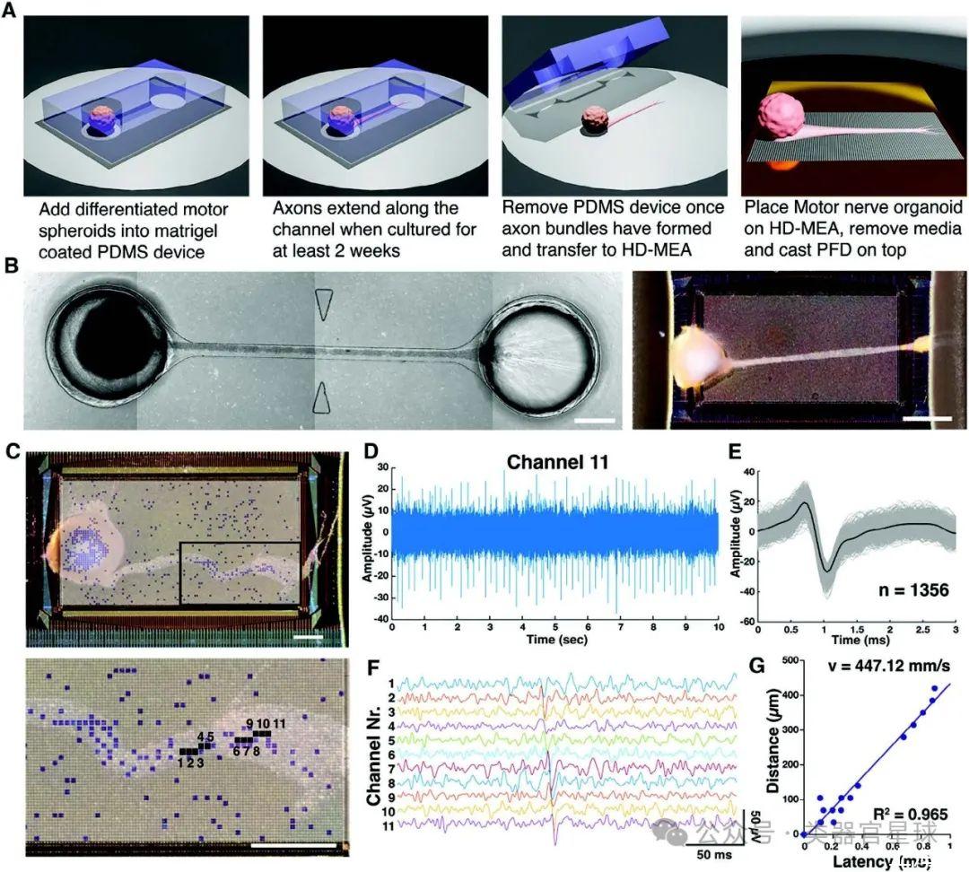 微電極陣列(MEA)技術為探索神經網絡動力學提供了一種強大的方法。一個關鍵的挑戰是將包括神經類器官在內的3D神經組織與平坦的MEA表面連接起來,因為將神經元放置在電極附近對于記錄神經元的微弱細胞外信號至關重要。