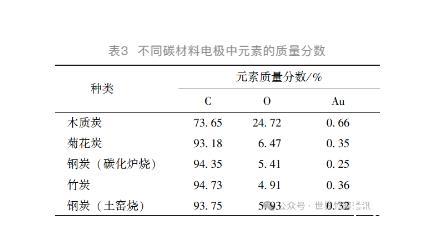 比表面積是指單位質量物料所具有的總面積(單位為m2/g),通常被用于描述固體材料的表面特性,這些固體材料包括粉末、纖維、顆粒、片狀或塊狀等形態。將比表面積與物質的孔隙結構結合來看,一般比表面積大、活性大的多孔材料,吸附能力強。表2為5種碳材料的比表面積和孔隙分布情況。可以看出,鋼炭(土窯燒)的比表面積為341.7242m2/g,竹炭的比表面積為277.8179m2/g,均遠大于其余3種碳材料的比表面積,這種大的比表面積為離子通過提供了更多的附著位點,也為電容器的儲能提供了更大的可能。同時,竹炭的灰分含量為1.58%(表1),在5種碳材料中灰分含量較少,灰分含量低可以有效降低離子擴散過快時雙電層瓦解的程度,并且對雙電層穩定性的提高有一定幫助。