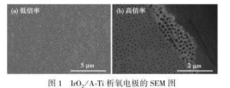 圖1為所制備IrO2/A-Ti析氧電極的SEM圖。