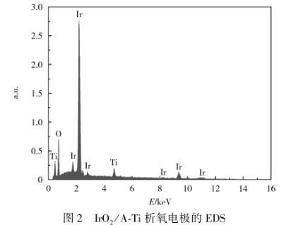 圖2為IrO2/A-Ti析氧電極的能量色散譜(EDS)。