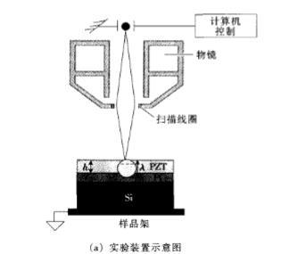 印章電極誘導的鐵電疇圖形化的優勢是可簡單而直接地實現鐵電表面極化方向重新取向,重新取向的鐵電疇可達到襯底以下的有效深度較大,但很難獲得特征尺寸小于1/,m的鐵電疇結構。原因是在印章電極制作的第一步即模具的圖形化需要采用傳統微細加工技術,要實現納米尺寸電極的制作存在困難。此外,由于印章電極使用時電場不均勻,在電極邊緣,電場非常高,這里是新疇成核的位置,電疇的橫向擴展生長使得最終得到的電疇的尺寸要比電極的實際尺寸大。