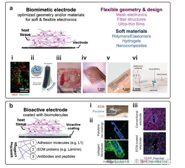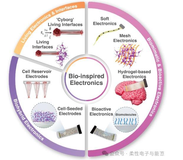 摘要神經接口技術正通過仿生策略革新生物電子界面設計,致力于提升設備與組織的兼容性與功能性。當前研究聚焦于將柔性材料與組織工程結合,在設備表面構建具有生物活性或含活細胞的動態界面層,以此促進生物組織的無縫整合并解鎖細胞調控的治療潛力。本文系統梳理了仿生電子學領域的最新進展,涵蓋三大創新方向:1)類組織柔性生物材料的開發;2)表面生物活性功能化涂層的優化;3)生物雜交界面(含生物組分)與全生命界面(含活體細胞)的構建。通過厘清關鍵術語體系,重點解析了生物活性成分在縮小實驗室成果與臨床應用鴻溝中的核心作用,為下一代可實現長期穩定整合、具備生物響應能力的智能神經接口指明發展方向。