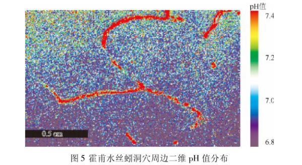 圖5霍甫水絲蚓洞穴周邊二維pH值分布