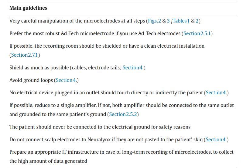 我們證明了在癲癇患者體內記錄高質量、長期且連續的微電極信號是可行的。我們的程序允許在生理狀態(如清醒和睡眠)和病理狀態(如發作間期癲癇樣放電和癲癇發作)期間,記錄局部場電位(LFP)和單個神經元的活動。我們分享了提高這些記錄質量的經驗,并提出了一些技術指南(表1、表2和表6),這些指南是對其他關于微電極記錄的方法學論文的補充。我們詳細描述了術后頭部包扎情況,這是電極操作中的關鍵步驟,并根據采集設置和環境對噪聲水平進行了量化。
