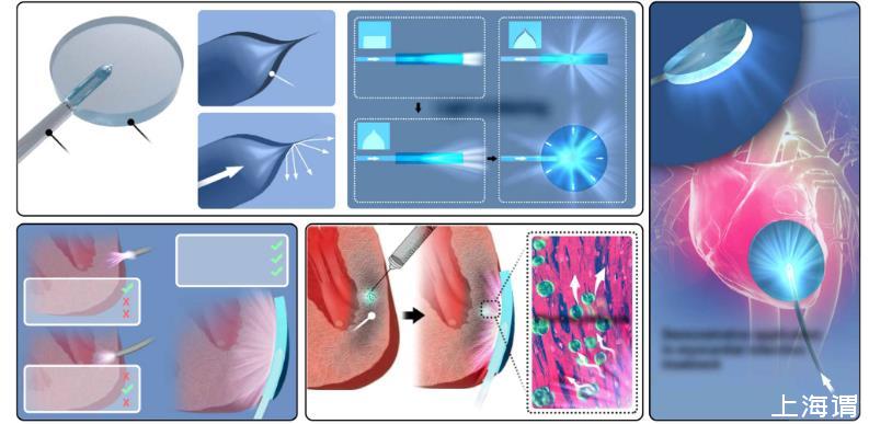 實(shí)驗(yàn)結(jié)果表明,iCarP能夠?qū)崿F(xiàn)大面積、高強(qiáng)度、寬光譜、連續(xù)或脈沖式的深度穿透照明,且無需穿透目標(biāo)組織。在小鼠腫瘤光熱和光動力治療以及大鼠心肌梗死光合作用治療模型中,iCarP展示了其對不同功能和吸收波長的光敏劑的兼容性,并且與臨床相關(guān)的光纖結(jié)構(gòu)相比,iCarP的光散射效果能夠改善治療結(jié)果。此外,iCarP在機(jī)械挑戰(zhàn)性較大的心肌上表現(xiàn)出穩(wěn)定的照明能力,并且在體內(nèi)實(shí)驗(yàn)中成功移除了TOF。研究人員還在犬類胸腔鏡手術(shù)中測試了iCarP與微創(chuàng)植入和照明的兼容性。