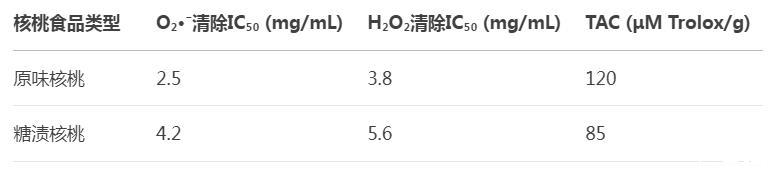 量化抗氧化能力:比較6種核桃食品(如原味、椒鹽、糖漬、炭烤等)的抗氧化活性差異。