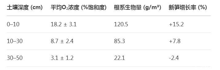 正相關(guān):土壤O?濃度較高(>10%飽和度)的區(qū)域,雷竹根系密度大,生長速度更快。
