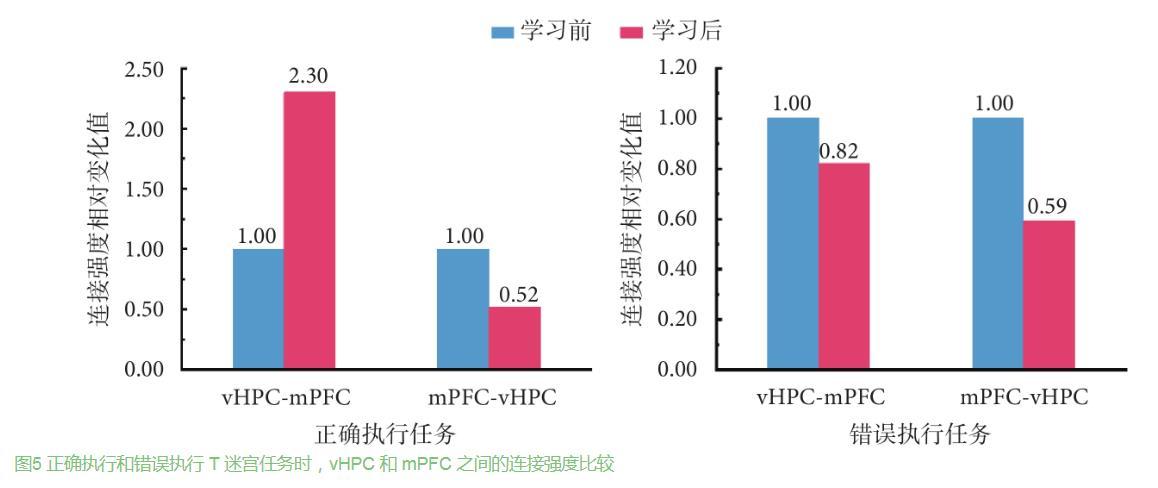 圖5正確執(zhí)行和錯(cuò)誤執(zhí)行T迷宮任務(wù)時(shí),vHPC和mPFC之間的連接強(qiáng)度比較