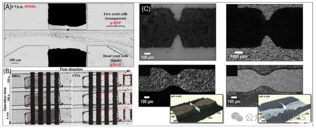 研究人員探討了微電極制造方面的進展,包括光刻、軟光刻和新興的非潔凈室技術。此外,他們還探討了快速原型開發、非接觸式電極和三維結構等創新方法,以及導電聚合物、碳基復合材料等材料選擇的相關問題。文中還分析了微電極在提升器件功能性、可擴展性和可靠性方面所起的作用。最后,本綜述指出了當前面臨的挑戰,包括需要提高制造的可重復性和多功能集成,并提出了未來潛在的研究方向,以進一步優化基于介電泳和電滲流的生物微系統,使其適用于先進的生物醫學與診斷應用。