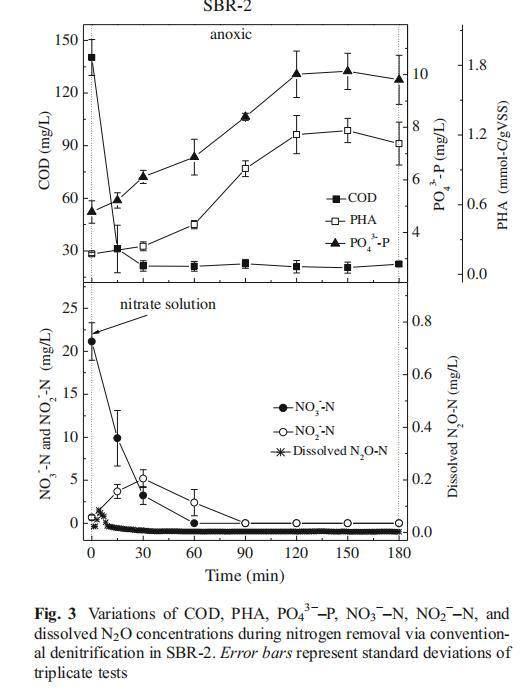 SBR-1使用PHA作為反硝化碳源,SBR-2使用乙酸鹽和丙酸鹽。因此推測,使用PHA進行反硝化及高NO??-N積累是導致兩反應器N?O生成差異的原因。
