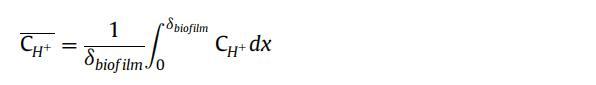根據(jù)生物膜厚度和質(zhì)子濃度深度剖面,可以通過以下方程計(jì)算Geobacter生物膜內(nèi)的平均質(zhì)子濃度,
