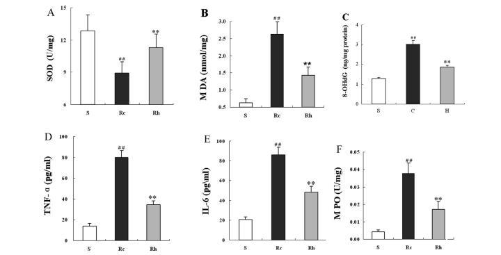 丙二醛(MDA)、髓過氧化物酶(MPO)、8-羥基-2-脫氧鳥苷(8-OHdG)和超氧化物歧化酶(SOD)測定: