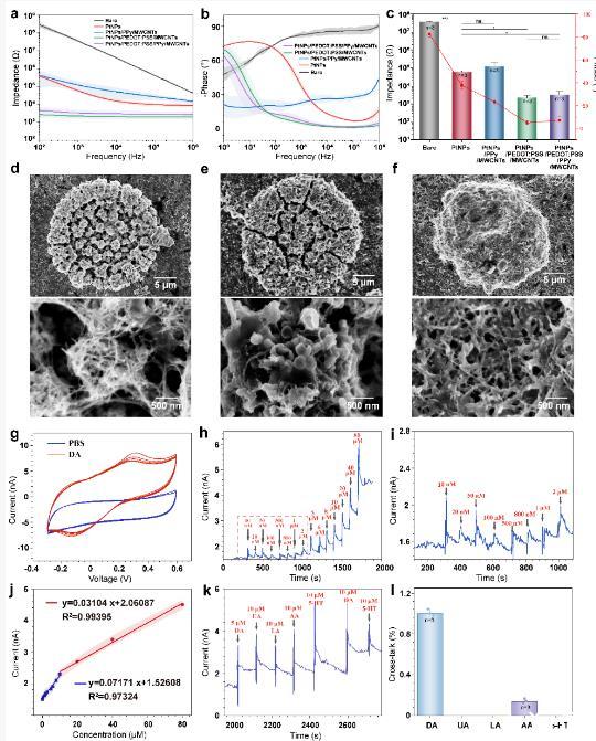 圖2.柔性腦機(jī)接口NeuroRevive-FlexChip的神經(jīng)電活動(dòng)和多巴胺檢測(cè)性能