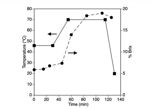 糖化:采用經修改的國會糖化法進行糖化。使用MA-001糖化裝置(Lg-automatic ApS,Frederiksvaerk,Denmark)。精細研磨、充分溶解的麥芽(丹麥麥芽集團,Vordingborg,丹麥)(100克)在46°C下與200毫升去離子水混合糖化30分鐘,然后溫度升至70°C(每分鐘升溫1°C)并保持25分鐘。當溫度達到70°C時,向醪液中加入100毫升去離子水。在70°C下保持60分鐘(糖化休止),然后將醪液冷卻至室溫(圖1)。為確保所有樣品的干物質含量相同,每個燒杯通過添加去離子水調整至相同的重量450.0克。隨后將醪液通過開放式折疊濾紙(#597 1/2,Whatman,Schleicher&Schnell,Dassel,Germany)過濾,甜麥汁樣品在過濾后立即冷凍。在糖化程序結束前收集的麥汁樣品,在過濾前也通過向燒杯中添加去離子水將總重量調整至450克。所有樣品在冷凍前進行了白利糖度(Brix%)測量。
