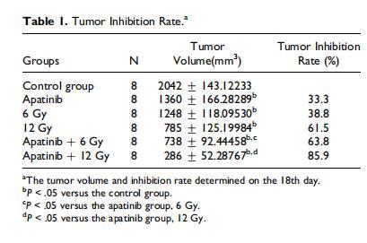 阿帕替尼聯合放療的抗腫瘤效果