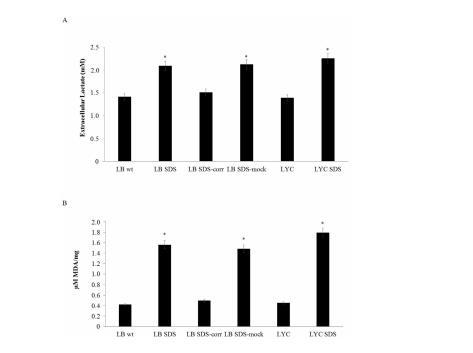 ROS攻擊多不飽和脂肪酸膜,生成脂質過氧化物。作為脂質過氧化過程的生物標志物,我們測量了丙二醛(脂質過氧化物的分解產物)。如圖2B所示,SDS細胞中的MDA水平高于對照樣本(p<0.001),從而證實了這些細胞中存在脂質過氧化反應,這是氧化應激水平增加的結果。