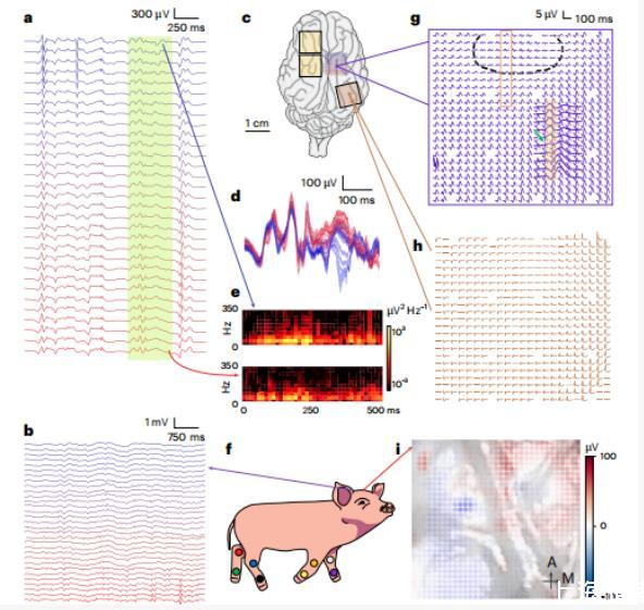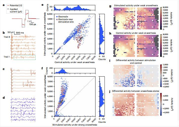 圖3:呈現了從多個功能腦區記錄的神經活動,包括在麻醉和自由活動狀態下的電活動,以及通過這些活動進行神經解碼和刺激的示例。