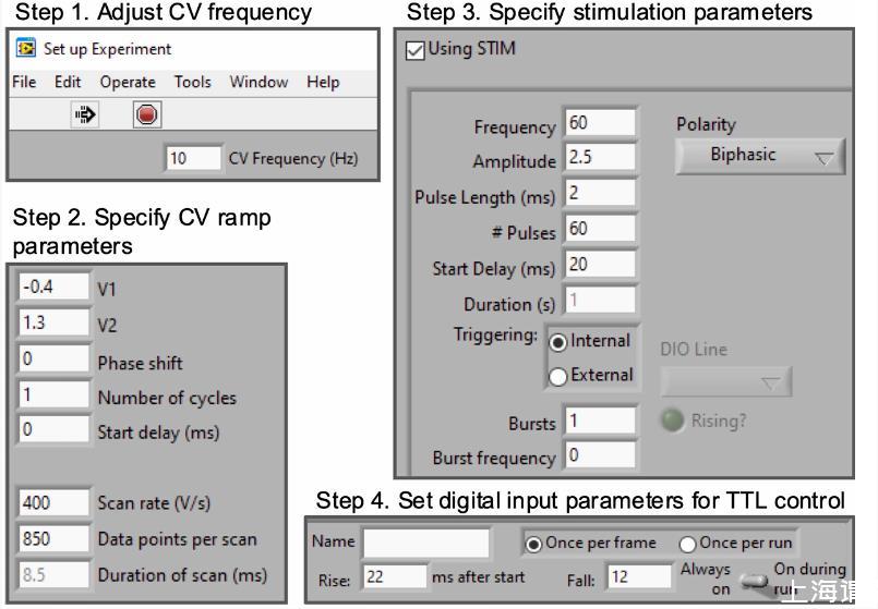 圖5:具有用于調(diào)整FSCV記錄參數(shù)選項(xiàng)的HDCV數(shù)據(jù)采集界面。
