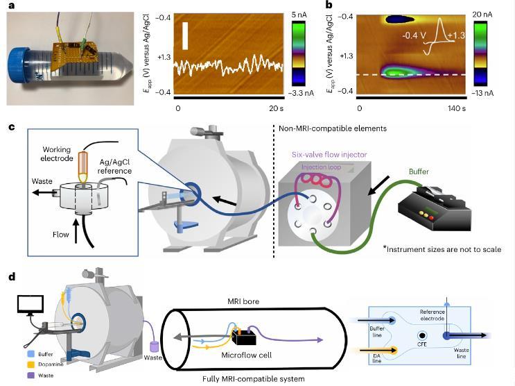 在當(dāng)代神經(jīng)科學(xué)研究領(lǐng)域,功能磁共振成像(fMRI)憑借其高空間分辨率的優(yōu)勢,成為揭示全腦活動(dòng)模式的重要手段。然而,單一模態(tài)的fMRI技術(shù)難以捕捉神經(jīng)化學(xué)物質(zhì)動(dòng)態(tài)變化這一關(guān)鍵信息,而電化學(xué)測量技術(shù)雖能精準(zhǔn)檢測神經(jīng)遞質(zhì)等分子的實(shí)時(shí)變化,卻無法實(shí)現(xiàn)全腦范圍的功能映射。如何在無相互干擾的前提下,實(shí)現(xiàn)多模態(tài)數(shù)據(jù)的時(shí)空同步整合,進(jìn)而建立神經(jīng)化學(xué)信號與腦功能網(wǎng)絡(luò)之間的因果關(guān)聯(lián),已成為領(lǐng)域內(nèi)亟待突破的核心挑戰(zhàn)。
