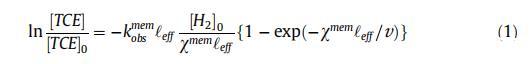 其中v(m/s)是空塔速度,kobs mem?eff((m/s)(MH2)-1)是膜中TCE的反應通量,χmem是H2分解的一級反應常數,χmem?eff(m/s)是膜中H2的反應通量。