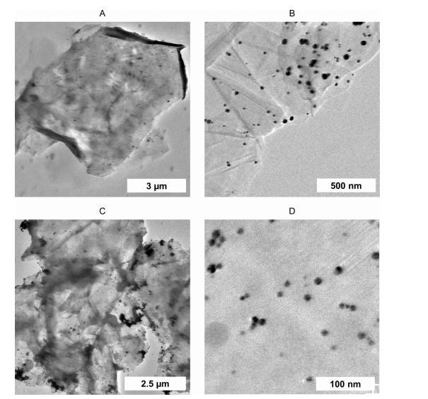在xGnPs上形成的Pd和Pd-Au納米顆粒的平均直徑分別為15 nm和30 nm(圖2)。Pd-Au納米顆粒具有“核殼”型形態,Pd殼和Au核,并分散在xGnP載體上,在xGnP邊緣附近觀察到更多簇。Pd/xGnP和Pd-Au/xGnPs上Pd相對于納米填料的濃度分別為10.3 wt%和12.4 wt%。2.1%的差異可歸因于兩種不同批次納米催化劑制備過程中的實驗誤差(例如確切反應溫度和試劑量)以及使用AA光譜測定催化劑濃度過程中的實驗誤差(例如從xGnP載體浸出的Pd和Au量)。