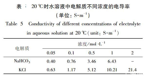 表5 20℃時水溶液中電解質(zhì)不同濃度的電導(dǎo)率(單位:S·m-1)