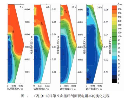 圖7工況Q1試樣第5次循環(huán)剖面視電阻率的演化過程