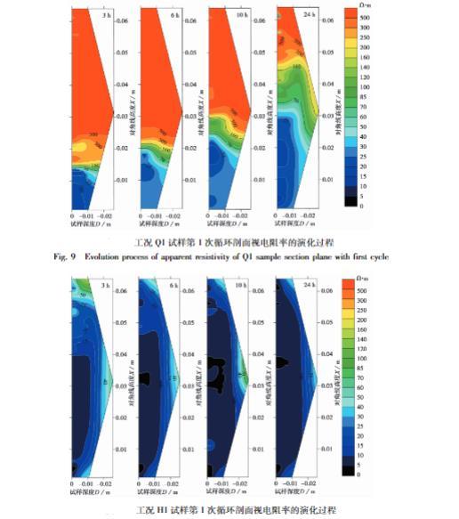 圖9工況Q4試樣第1次循環(huán)剖面視電阻率的演化過程