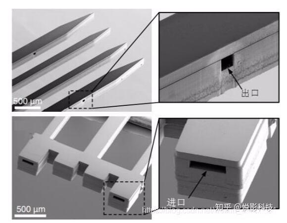 隨著神經(jīng)科學(xué)的快速發(fā)展,研究者對神經(jīng)微電極的要求也不再僅僅局限于記錄神經(jīng)元的動(dòng)作電位,而是希望在滿足基本的記錄功能的基礎(chǔ)上,增加其他的功能。例如,集成有微流體通道的神經(jīng)微電極,如下圖所示[5]。