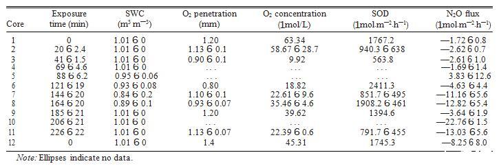 表 1. 美國馬薩諸塞州北岸海洋潮間帶泥灘的沉積物含水量 (SWC) 和氧氣特性,以及整個(gè)低潮期間的沉積物需氧量 (SOD) 和 N2O 通量。