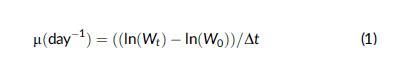 式中 W0 和 Wt 為培養(yǎng)期開始和結(jié)束時的鮮重; Dt 是采樣間隔之間的天數(shù)。