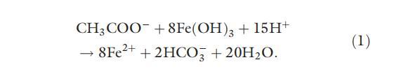 Fe(III) 羥基氧化物的微生物還原是缺氧沉積物環境中 Fe 和碳循環的關鍵過程 (Lovley, 1991; Nealson & Saffarini, 1994)。 將 Fe(III) 還原與有機碳或 H2 的氧化結合起來的異化 Fe(III) 還原菌,在自然環境中,尤其是在非硫化還原條件下,在有機碳的氧化中起重要作用 (Lovley, 1991 ;洛夫利,1994 年)。 已從天然樣品中分離出各種異化 Fe(III) 還原菌,它們能夠誘導各種 Fe(III) 羥基氧化物的還原溶解與有機碳的氧化相結合(Lovley 和 Phillips,1988 年;Lovley 等人,1993 年) ;Coates 等人,1996 年;Slobodkin 等人,1997 年)。 例如,自然環境中最常見的異化 Fe(III) 還原之一將乙酸鹽氧化與短程有序 Fe(III) 羥基氧化物的還原結合起來,可以用以下方程表示 (Roden, 2003):